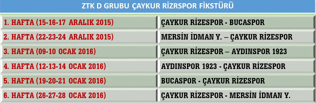 Yapılan kura çekimi sonrası Çaykur Rizespor’umuz, Mersin İdman Yurdu, Bucaspor ve Aydınspor 1923 ile D Grubunda mücadele edecek.