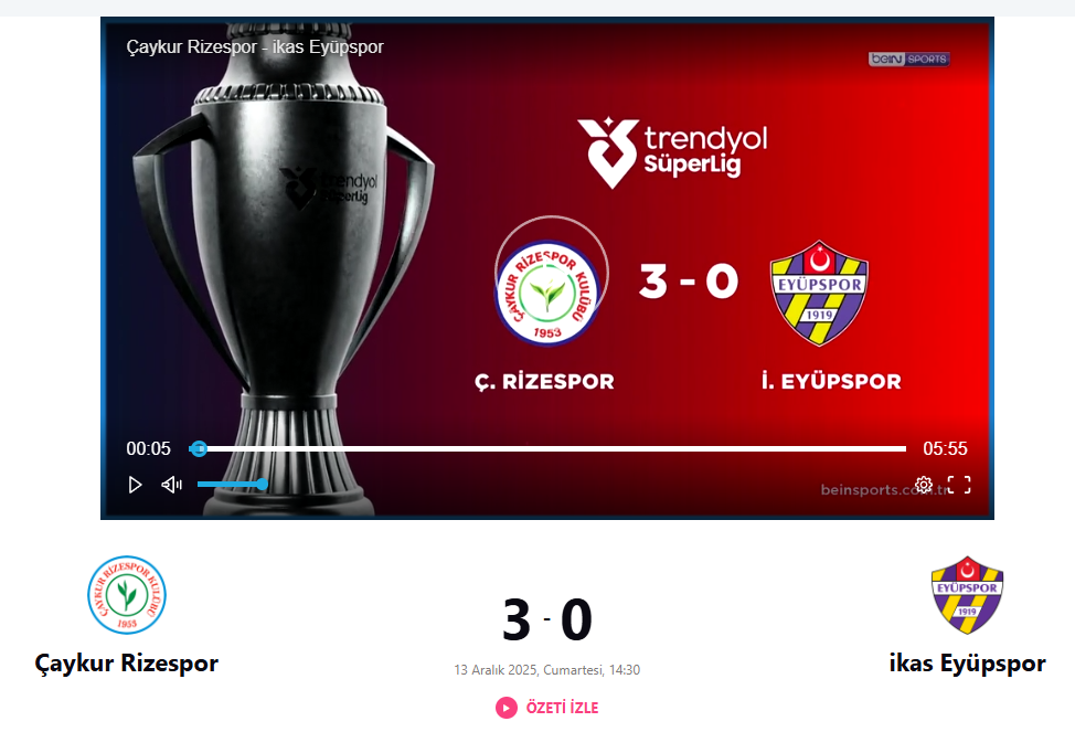 ÇAYKUR RİZESPOR 3 - 0 İKAS EYÜPSPOR