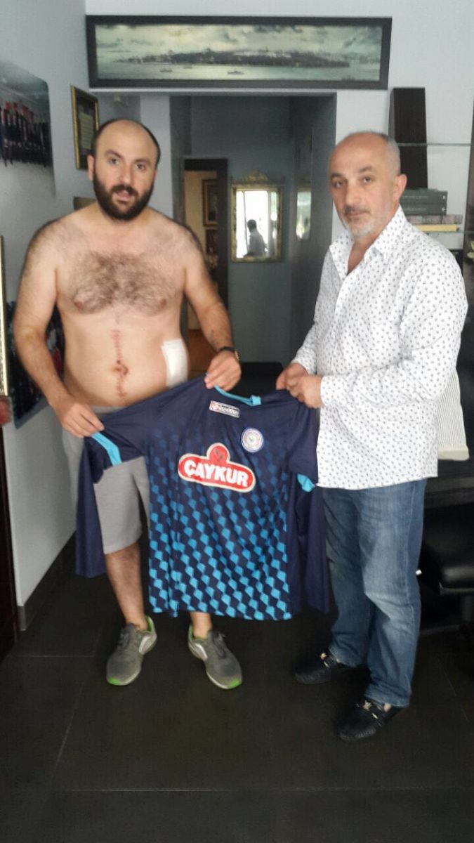 Ayrıca darbe girişimi gecesi İstanbul Büyükşehir Belediyesi önünde vurularak yaralanan ve iki kez ameliyat olan Rizeli Gazi Üveys Karen Ayvaz'a da Çaykur rizespor forması hediye edildi.