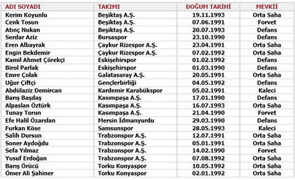 Teknik Direktör Müfit Erkasap yönetimindeki A2 Mili Takım aday kadrosunda şu isimler yer alıyor: