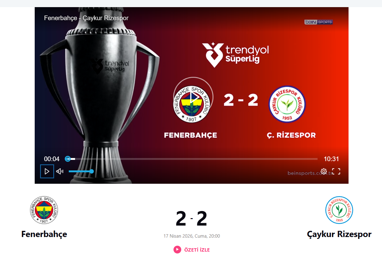 Goller: Talisca (dk. 80 pen.), Kerem Aktürkoğlu (dk. 86) (Fenerbahçe), Ali Sowe (dk. 47), Modibo Sagnan (dk. 90+8) (Çaykur Rizespor)