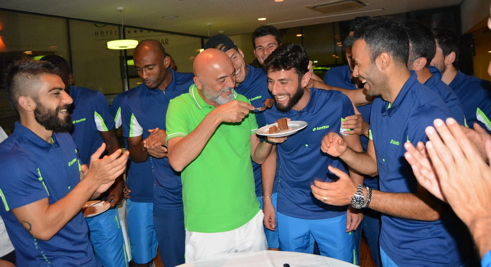 Doğum günü kutlaması öncesinde iki forvet oyuncumuz Tevfik ve Kweuke, pastalarını birlikte keserken, ilk ikramı Teknik Direktörümüz Hikmet Karaman yaptı.