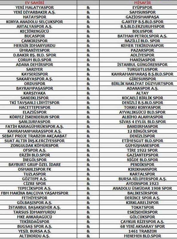 Kura çekimi saat 14.00'te Riva'daki Hasan Doğan Milli Takımlar Kamp ve Eğitim Merkezi Orhan Saka Salonu'nda 98 kulübün katılımıyla gerçekleştirildi.