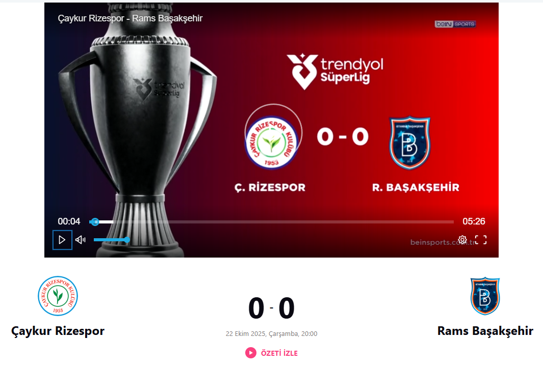 Trendyol Süper Lig’in 3. Hafta erteleme maçında Çaykur Rizespor'umuz RAMS Başakşehir ile golsüz berabere kaldı.