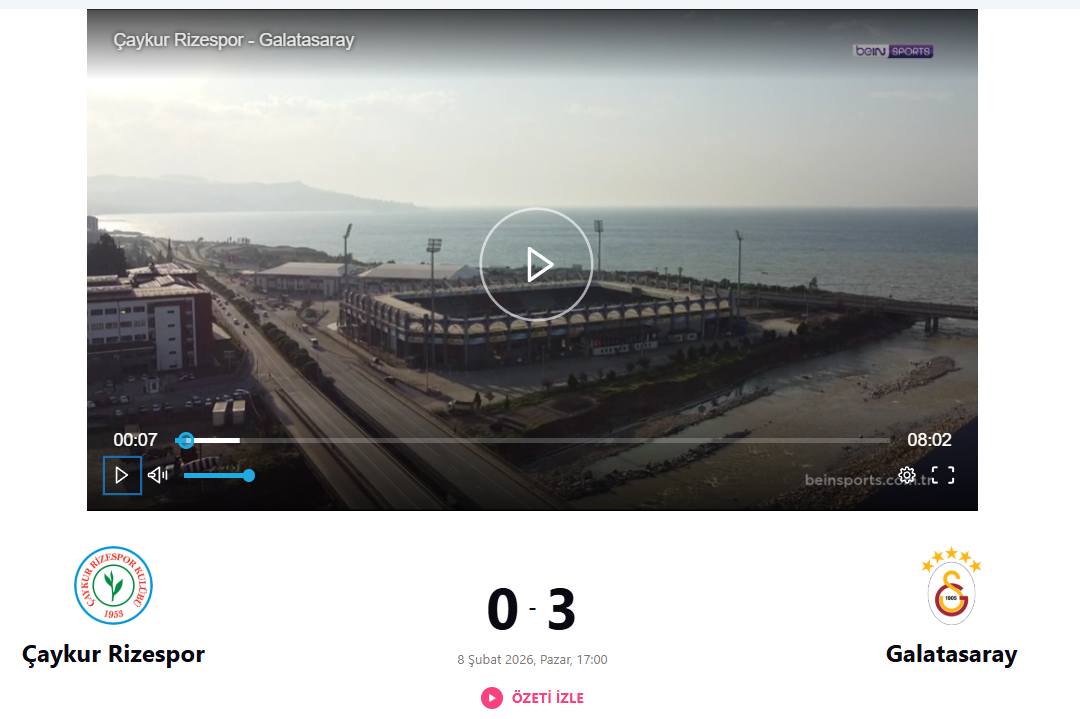 Trendyol Süper Lig’in 21. haftasında Çaykur Rizespor'umuz, sahasında Galatasaray’a 3-0 mağlup oldu.