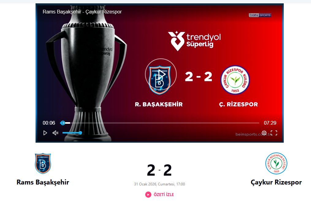 RAMS BAŞAKŞEHİR FK 2 - 2 ÇAYKUR RİZESPOR